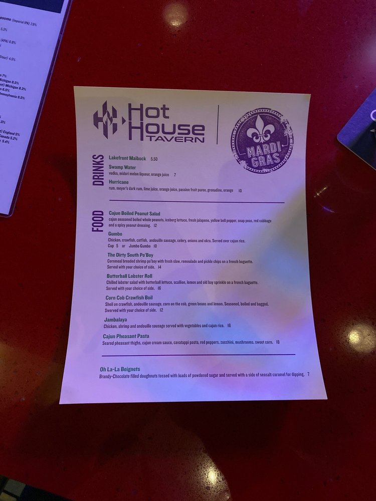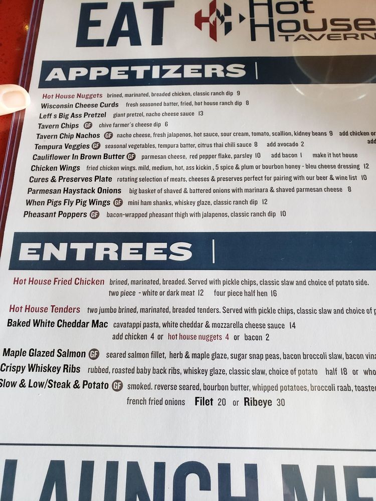 Hot House Tavern Menu